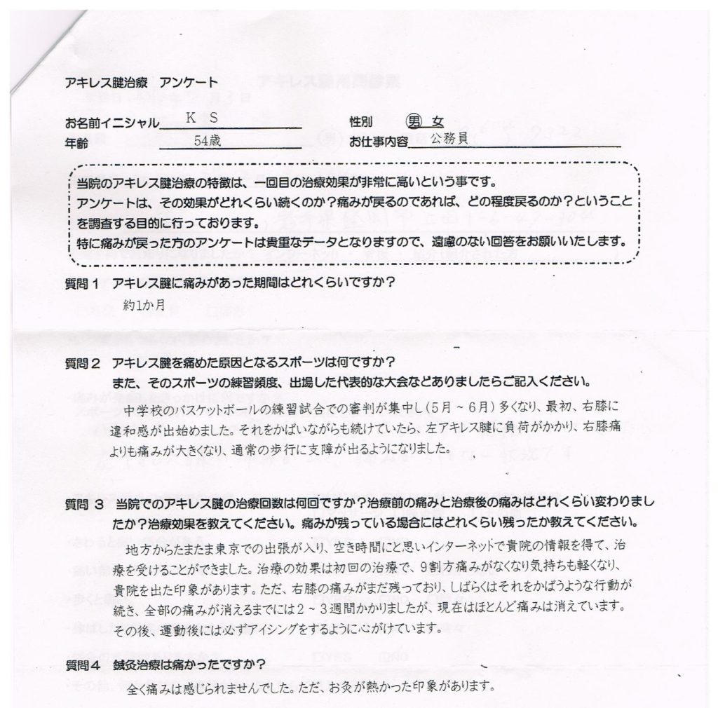当院でのアキレス腱の治療回数は何回ですか?治療前の痛みと治療後の痛みはどれくらい変わりましたか?
