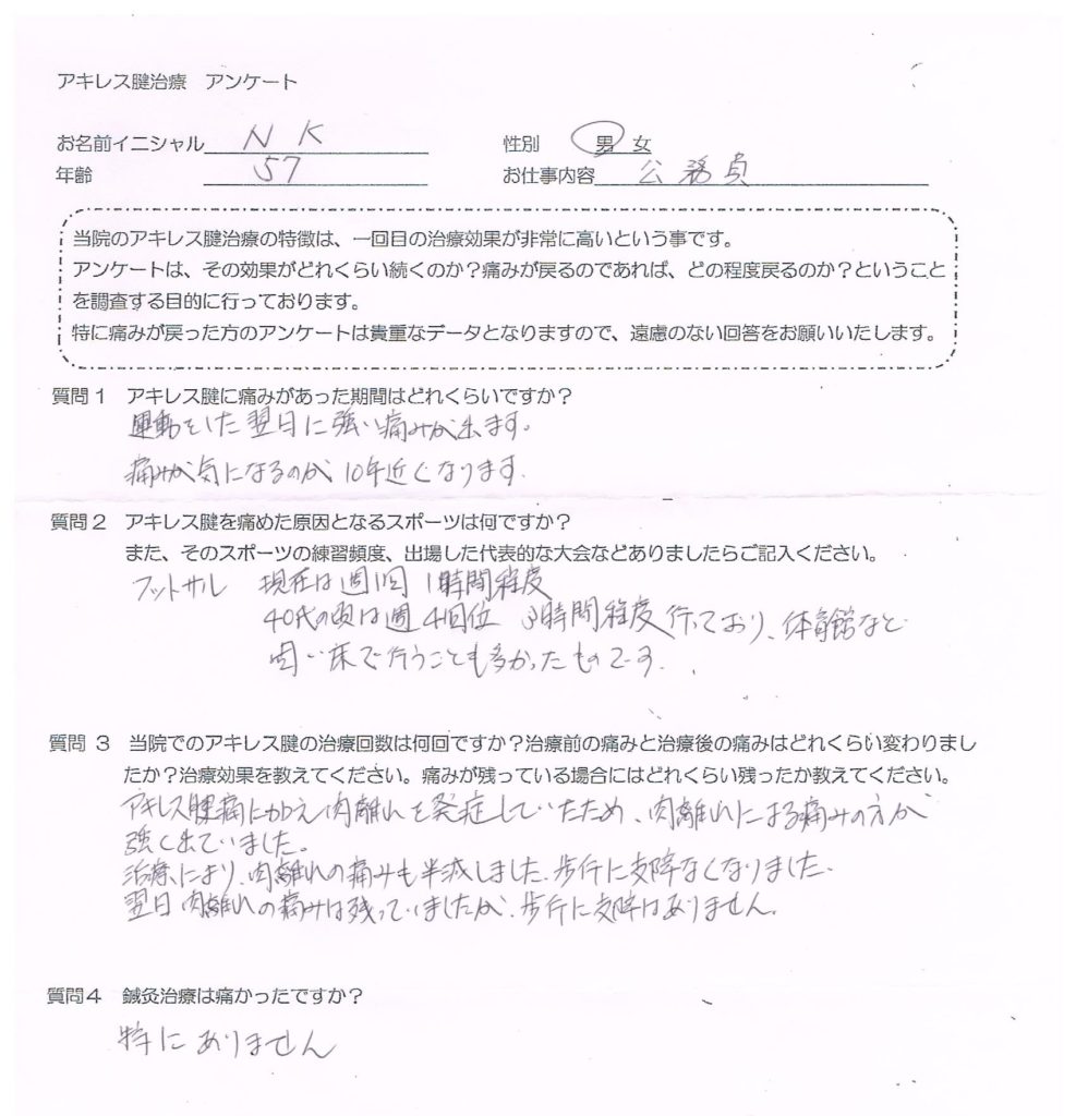 この患者様は、10年近く断続的に続くアキレス腱炎と肉離れを治療させていただいたのですが、肉離れも痛みが半減したようで良い効果が出たと思います。