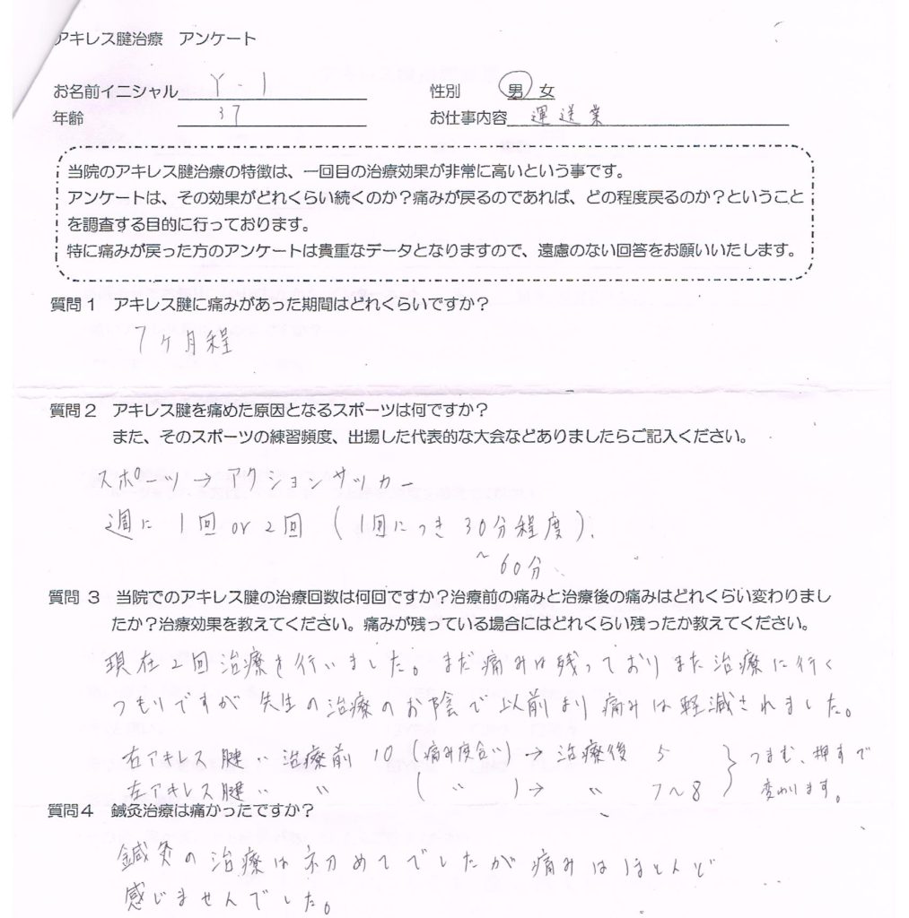 この患者様のアンケートの結果は2回の治療で、右アキレスけんが治療前の半分。左アキレス腱が治療前の2~3割減です。