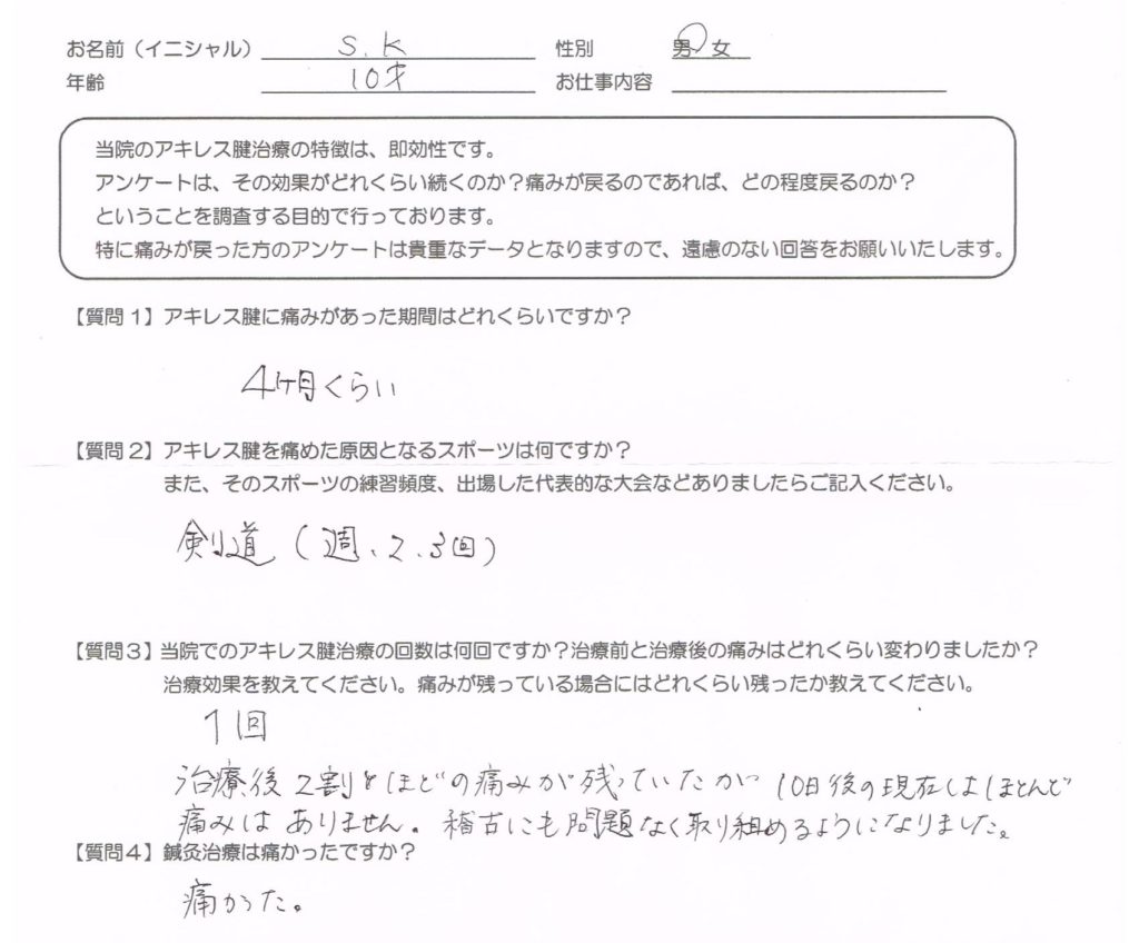 1回の治療で、10日後には問題なく稽古に取り組めているそうです。