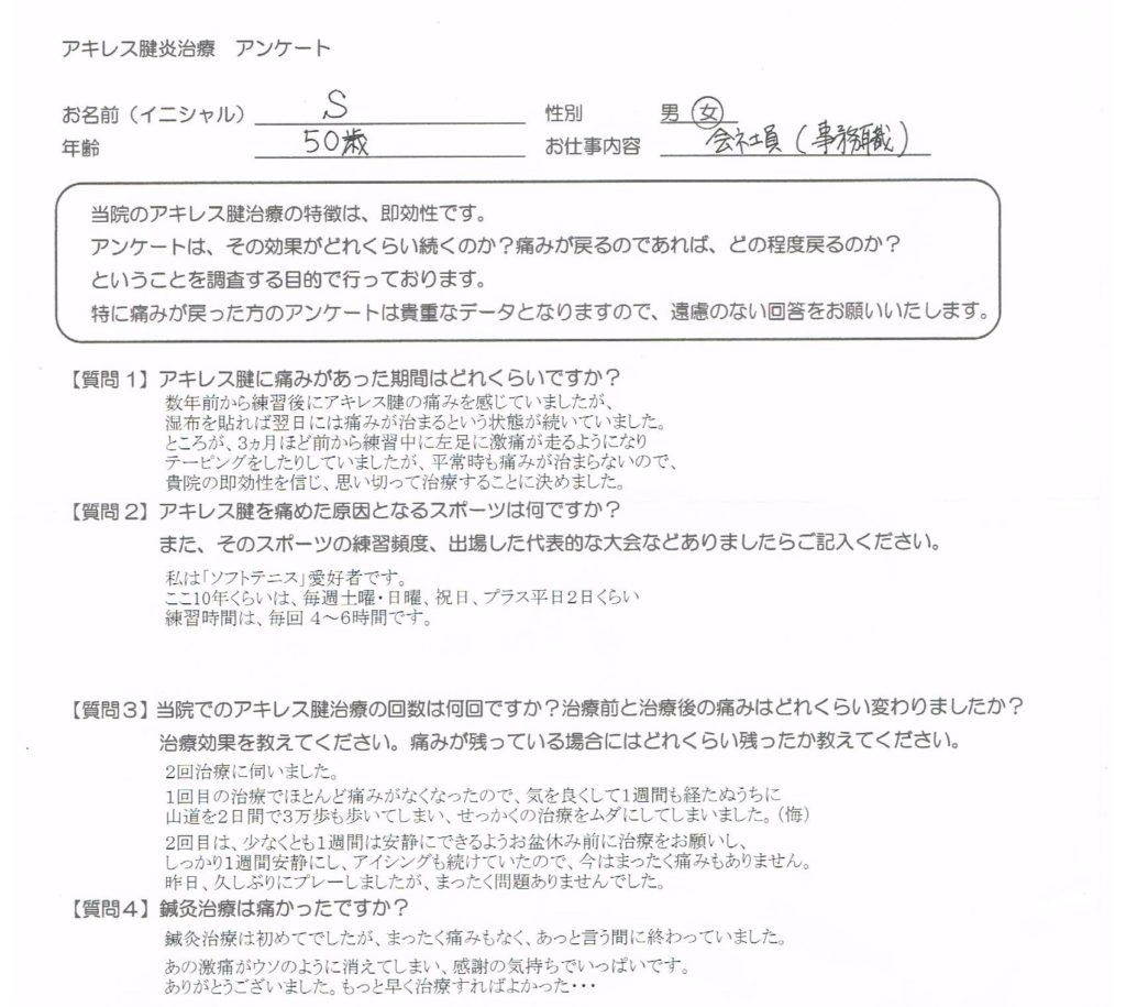 2~3年前からのアキレス腱の痛みが2度の治療で良くなりました。