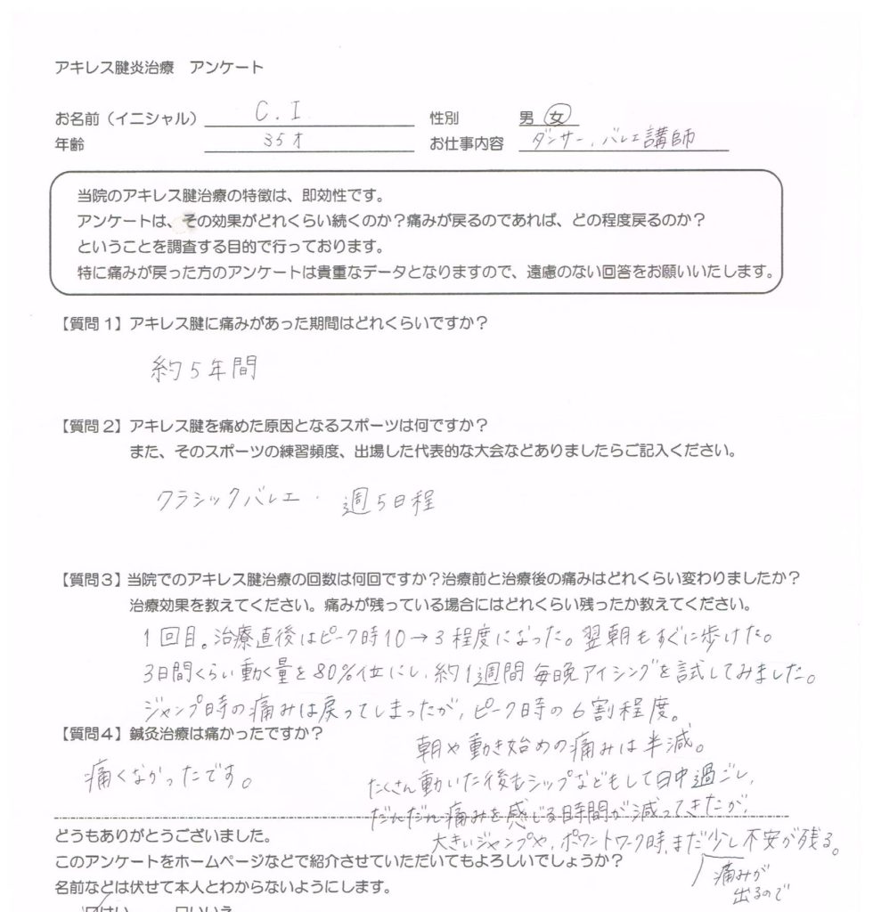バレエをされていてアキレス腱の痛い方は是非一度お試しください。