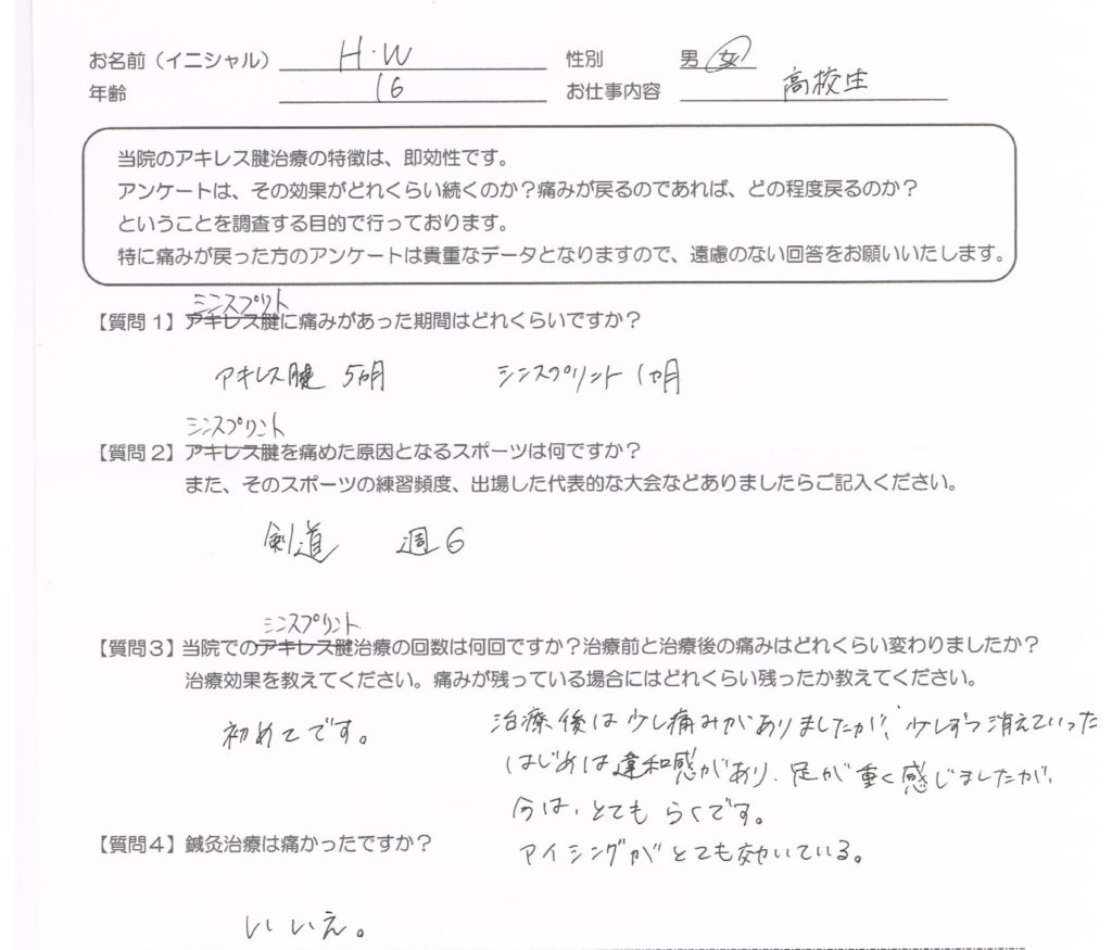 この患者様も、アキレス腱炎で5カ月、シンスプリントで1か月悩まれた患者様です。