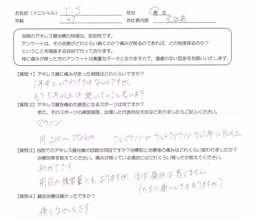 当院でのアキレス腱の治療回数は何回ですか?治療前の痛みと治療後の痛みはどれくらい変わりましたか?