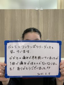 バレエは複雑な動きの中で痛めてしまうので、症状も複雑な症状であることが多いのですが、皆さん体重が軽いこともありツボが上手に取れると一度の治療でよくなる様な効果が期待できます。